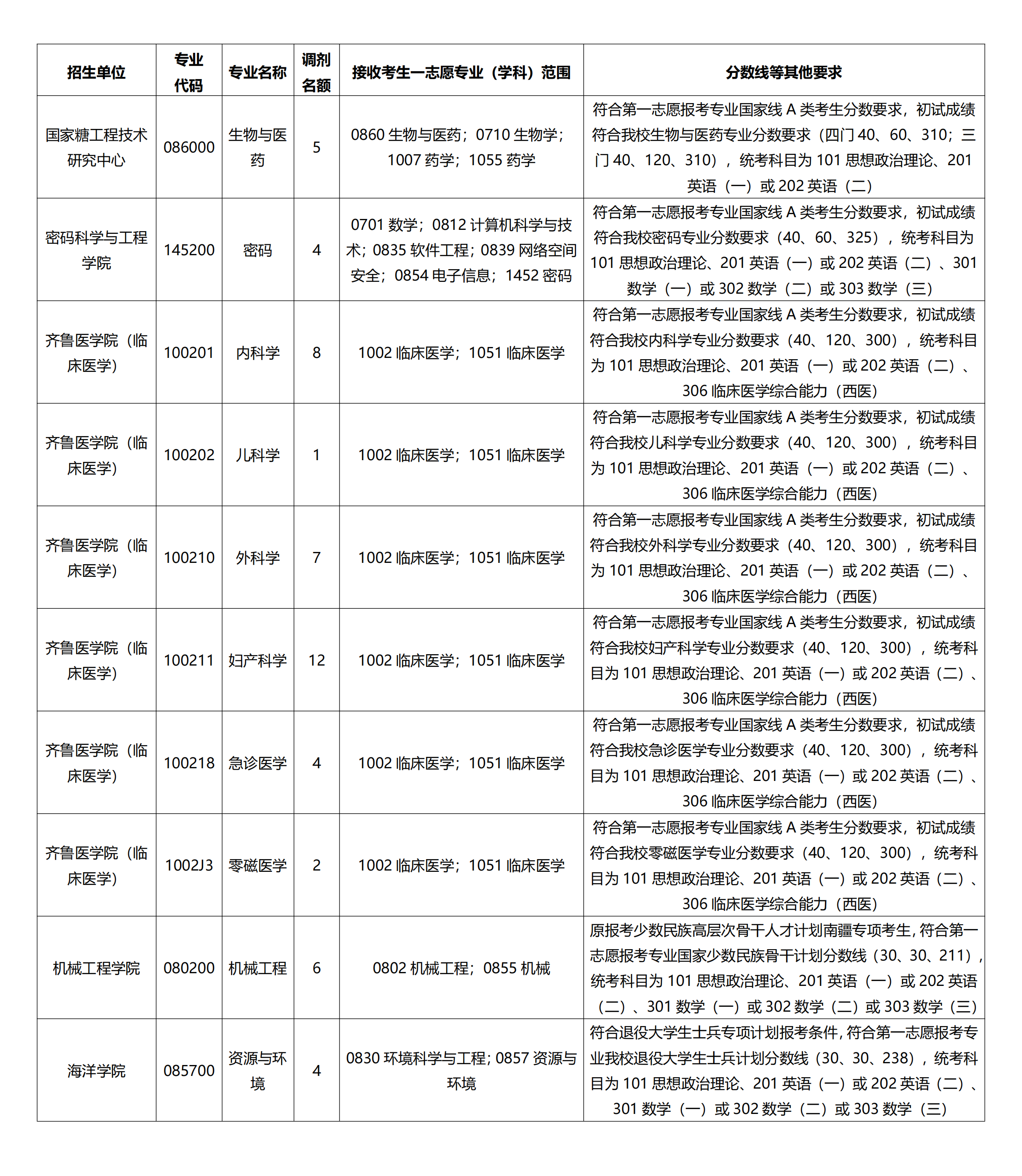 2.接收考生一志愿专业(学科)范围、分数线等其他要求详见表格说明。
